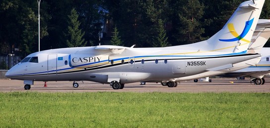 Белгілі маркетолог, блогер Әлімжан Бейсембаевтың 2015 жылғы қазақстандық әуе компаниялары туралы шолуында бұл компанияның 6 ұшағы бар деп жазады. Соның бірі осы – Dornier Do-328 Do-328JET. Бұл ұшақтың бірінші иесі америкалық компания болыпты. planespotters.net сайтында ұшақтың иесі ретінде екі компания көрсетілген — ең алғашқы тіркеу нөмірі N355SK, АҚШ-тағы Skyway-Airlines әуе компаниясына тиеселі болған. Кейін 2013 жылдың маусым айынан бастап қазақстандық тіркеумен, Caspiy меншік иесі ретінде көрсетілген. 2013 жыл деп көрсеткені сәл қате ақпарат сияқты. Өйткені «Каспий» ӘКК ұшақты 2011 жылдың 19 шілдесінде америкалық Джетран компаниясынан 3 800 000 АҚШ долларына сатып алған. Оның 760 000 долларын алдын-ала төлеген.