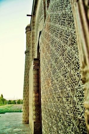 Кесененің жалпы көлемі 7,6 х 7,6 метр. Кіру есігі шығыс бөлігінде орналасқан. Ал керегесі 80 сантиметр қалыңдықтағы 3 қабаттан құралған. Бұдан өзге кірпішінде 60 түрлі ою-өрнек түрлі пайдаланылған.
