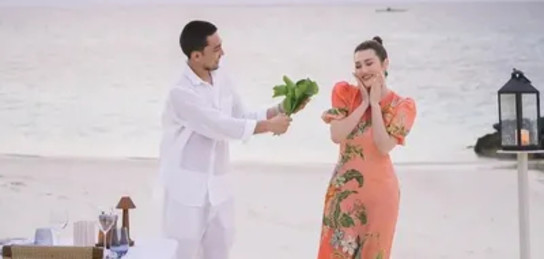 Ол бұл мерекені Мальдив аралында, мұхиттың жағасында атап өткенін атап өтті. Ерке Есмахан сахнада Raim есімімен танымал әнші Райымбек Бақтыгереевпен отау құрған болатын.