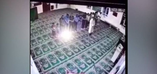Видеода Шелек ауылындағы мешітте ондаған ер адамның намаз оқып жатқанын көруге болады. Бір сәтте ересектермен бірге тұрған балалардың бірі имамның алдынан жүгіріп өтпек болғанда ол баланы қолымен қағып жіберіп, сұлатып тастайды.
