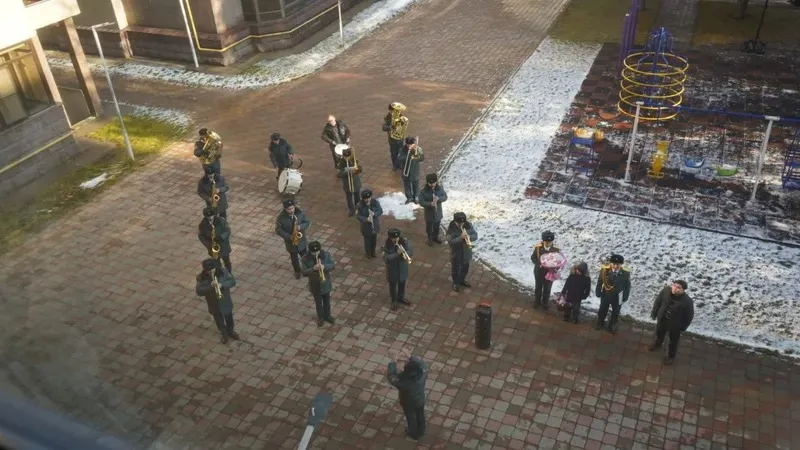 Туған күні еліміздің Тәуелсіздік күнімен тұспа-тұс келген өнер иесі өз үйінің терезесінен концертті күлімсірей тамашалады. Әскери оркестрдің өнерін әншінің өзі мен жақындары ғана емес, үйдің барлық тұрғындары да қызыға тыңдады.