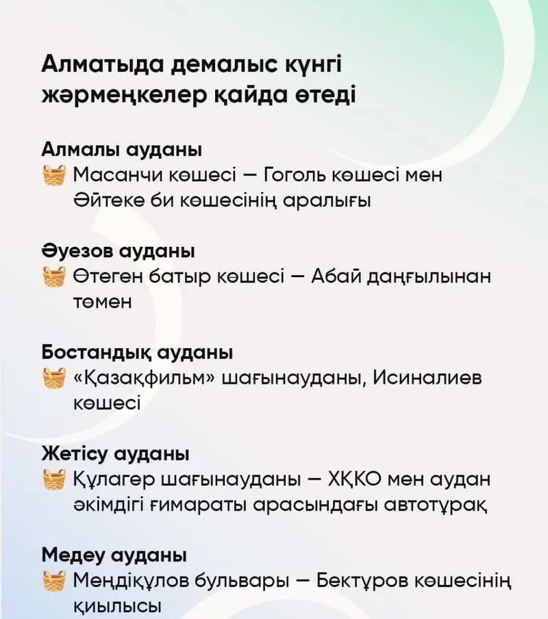 Алматыда демалыс күнгі жәрмеңкелер көбейеді