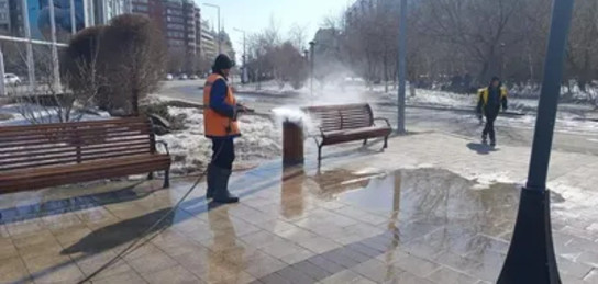 Қазіргі таңда қаланың барлық алты ауданында санитарлық тазалау жұмысы жүргізілуде. Тротуарлар мен жол жабындары арнайы техниканың көмегімен тазаланып, көгалды тұстар және басқа жерлер ретке келтіріліп жатыр.