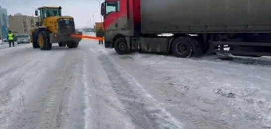 Аягөз қаласында қолайсыз ауа райы салдарынан КамАЗ жүк көлігі жолдың бір бөлігінде тұрып қалып, көлік қозғалысына қиындық туғызды. Бұл жағдай өзге жүргізушілерге қолайсыздық әкеліп, жол қауіпсіздігіне әсер етуі мүмкін еді.