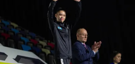 Жасөспірімдер арасындағы әлем чемпионы Ақмарал Ерекешева алғаш рет ересектер деңгейіндегі ірі халықаралық жарысқа қатысып, таспа жаттығуында 27.000 ұпай жинап, қола медаль иеленді.