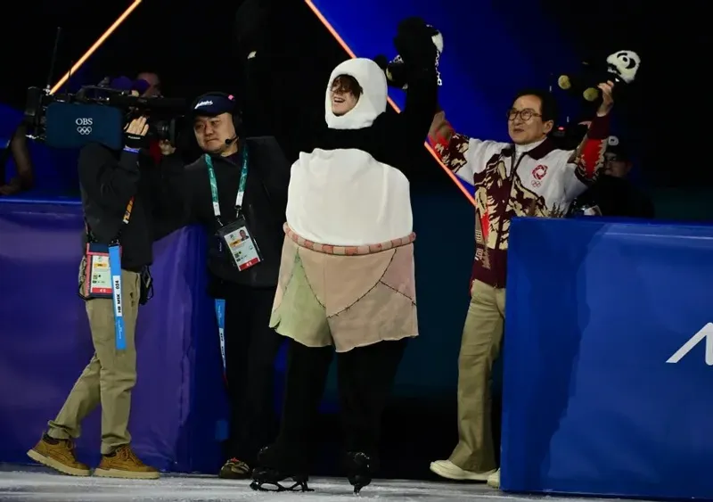 Осыдан кейін Миландағы гала-шоуда Джеки Чан мәнерлеп сырғанаудан Олимпиада чемпионы Михаил Шайдоровты құттықтады. Ол панданың киімімен өнер көрсеткен 21 жастағы қазақстандықты жанкүйерлер трибунасында асыға күтіп тұрды. Жекпе-жек шеберінің қолында екі панда-жұмсақ ойыншығы болды.