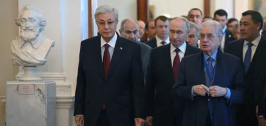 Санкт-Петербургте ТМД елдерінің бейресми саммитіне қатысқан Қазақстан президенті Қасым-Жомарт Тоқаев өзге мемлекеттердің басшыларымен бірге Эрмитаж музейіне экскурсияға барды.