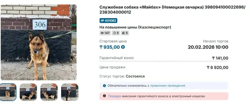 Sauda.e-qazyna.kz сауда алаңында "тірі" лоттарды қазақстандық Байрам Баубекұлы байқап, бұл туралы Threads желісінде жазба жариялаған. Сатылымға алты ит – неміс овчаркалары Маркиза, Майбах, Марла, Морек, Мариса және бельгиялық овчарка Майра шығарылған. Сатушы – ҚР Қорғаныс министрлігінің Мемлекеттік қорғаныс тапсырысы комитетіне қарасты шаруашылық жүргізу құқығындағы республикалық мемлекеттік кәсіпорын "Қазарнаулыэкспорт". Ал иттер Қостанай облысы бойынша ҰҚК Шекара қызметі департаментінде ұсталынған.
