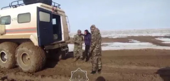 ТЖМ құтқарушылары жол талғамайтын Трэкол көлігімен 100 шақырымға жуық жол жүріп өтіп, жолдың тазартылған бөлігіне көлікті сүйреп шығарды.