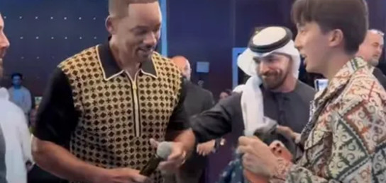 Актер өнер көрсетіп болған соң, қазақстандық блогер сахнаға көтеріліп, көптің көзінше Уилл Смиттің иығына шапан жапқан. Оқиға өте жылдам әрі аяқ асты болған.
