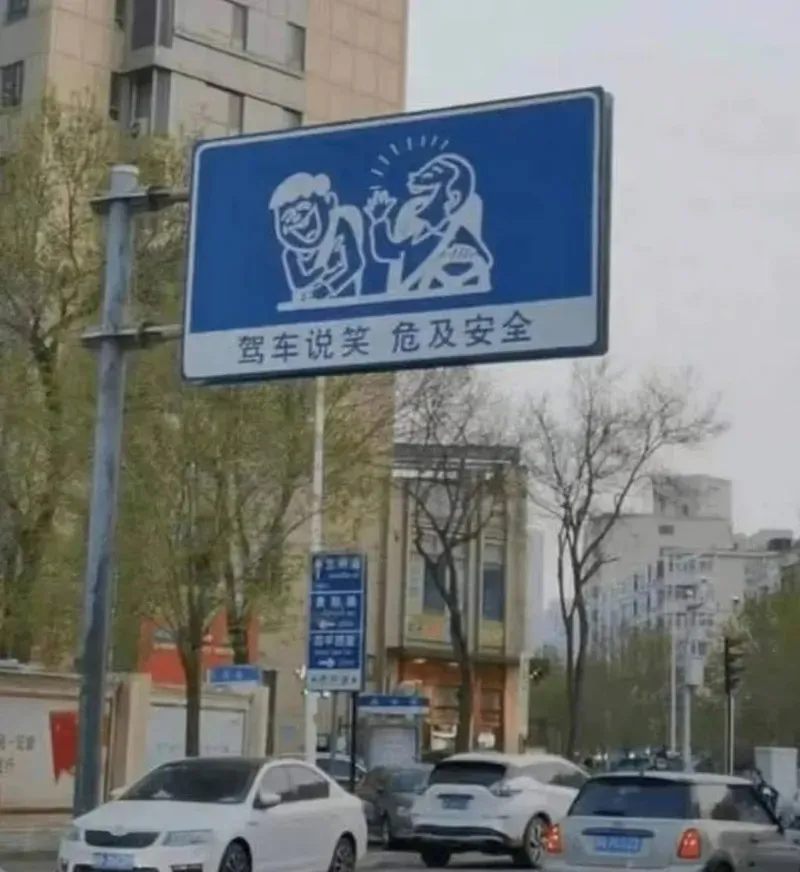 South China Morning Post басылымының мәліметінше, белгіде жүргізуші мен жолаушының күліп, әзіл айтып отырғанын бейнелейтін карикатура салынған.