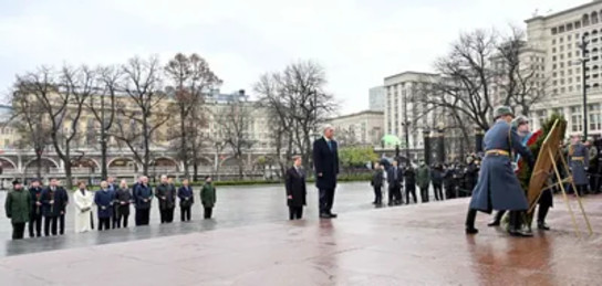 ҚР Президенті Қасым-Жомарт Тоқаевтың Ресей Федерациясына мемлекеттік сапарының екінші күні Александр бағындағы "Белгісіз жауынгер бейіті" мемориалына гүл шоғын қою рәсімінен басталды.