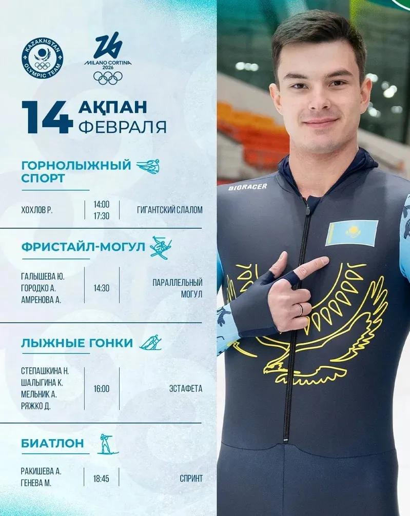 Олимпиада-2026: бүгін Галышева және 16 отандық спортшы өнер көрсетеді