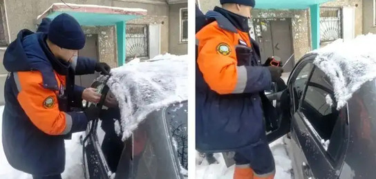 Оқиға орнына шұғыл жеткен ШҚО ТЖД жедел құтқару жасағының құтқарушылар арнайы құралдардың көмегімен көліктің есігін ашып, "тұтқындағы сәбиге" көмектесті.