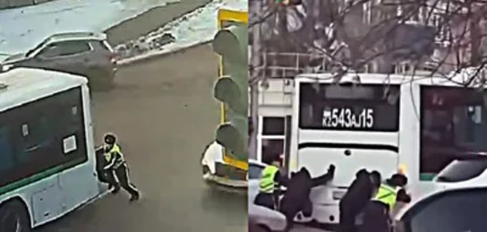 Оқиға орнында патрульдеу бағытына бет алған қалалық патрульдік полиция батальонының аға инспекторлары Саян Тұрсұмбаев пен Әлім Маликов автобусты екі жүргізушімен бірге қиылыстан итеріп шығарды. Жол қауіпсіздігі қамтамасыз етілген соң, полицейлер қала көшелерін патрульдеуді жалғастырды, ал автобусқа көмекке арнайы техника алдырылды.