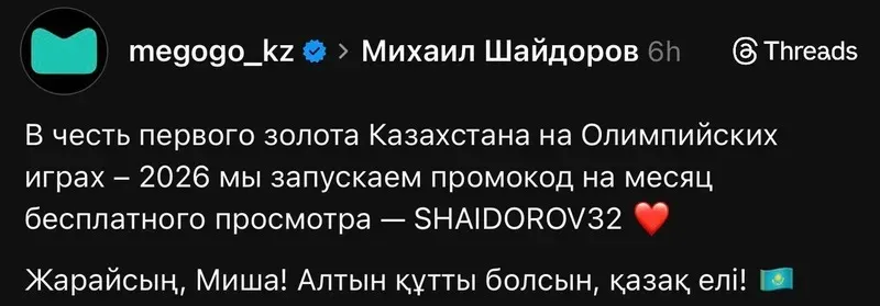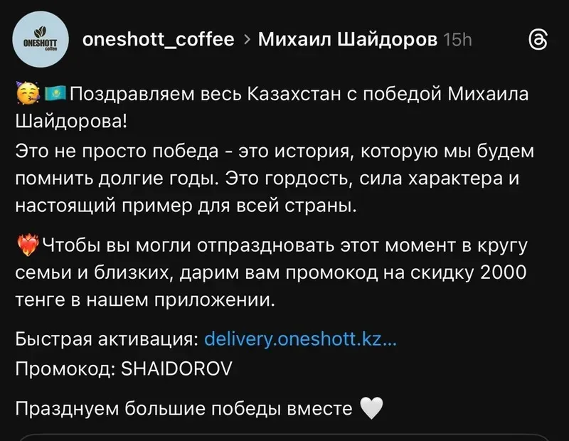 14 ақпаннан бастап елде "Шайдоров" промокодымен басталатын жеңілдіктер легі бастау алды, деп хабарлайды Zakon.kz.