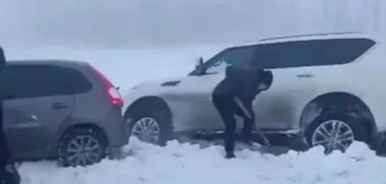 ШҚО-да полицейлер қарлы боранда тасжолда қалып қойған көліктерге көмектесті