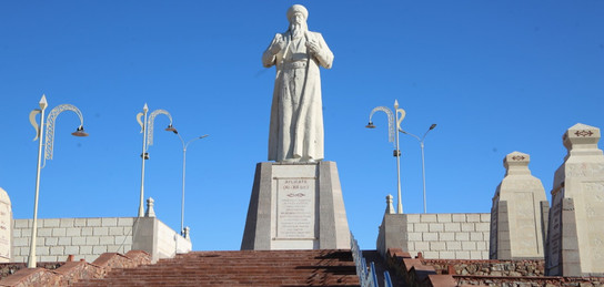 Осы қағандар мен ғұламаларды тамашалап, баспалдақпен жоғары көтерілсеңіз, Тараз қаласының негізгі символы – ұлы бабамыз Әулие-атаның еңселі ескерткіші алдыңыздан шығады. Салмағы 10 тонналық ақ түсті мәрмәр тастан құйылған ескерткіштің постаментінің биіктігі - 8 метр, ал мүсінінің биіктігі 13 метрді құрайды. Алып тұлғаның болмысын барынша ашуға басымдық берілген. Мүсіннің әр бедер, бөлік, кескіндемелеріне дейін аса ыждаһаттылықпен, ерекше ықыласпен сомдалған. Мәселен белдігі құдірет пен биліктің, ал ақ сақалы ұлылық пен даналықтың символын суреттейді. Батысқа байыппен қараған ұлы бабамыз, Тараз қаласы халқының бақуатты және берекелі өмір сүруіне өз батасын беріп тұрғандай. Айта кетерлігі бұл алып ескерткіш биіктігі мен салмағы жағынан да республикадағы ең үлкені. Одан беріде, "Тектұрмас" тауының Талас өзені жағындағы ең биік беткейінде Тараз қаласын жоғарыдан көруге арналған тамашалау алаңшасы орналасқан. Бұл алаңда құс ұшу биіктігінен Тараз қаласының тынысы мен Талас өзенінің ағысына қарап, айналадағы тарихи дүниелерді тамашалауға барынша мүмкіндік жасалған.
