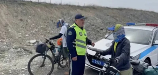 Жетісу облысында патрульдік полиция жол бойында шетелдік велосаяхатшыларға көмектесті