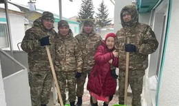 БҚО-да ТЖД қызметкерлері зейнеткерлердің үйлерін аралап, аулаларды қардан тазалады