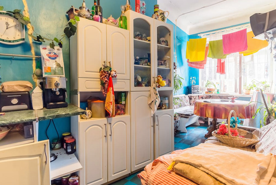Елдегі ең романтикалық қала Санкт-Петербургтан осындай сипаттағы пәтер алуға болады. Екі адамға арналған апартамент Мәскеу вокзалынан 5 минуттық жерде орналасқан. Көне жиһаз, екі адамдық керует, қауашақтағы гүлдер — 10 доллларға лайығы да осы.