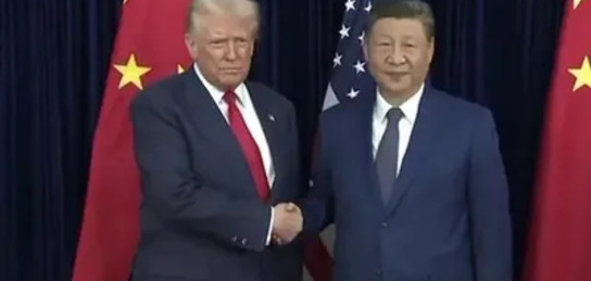 Си Цзиньпин мен Дональд Трамп Пусан әуе базасында кездесті
