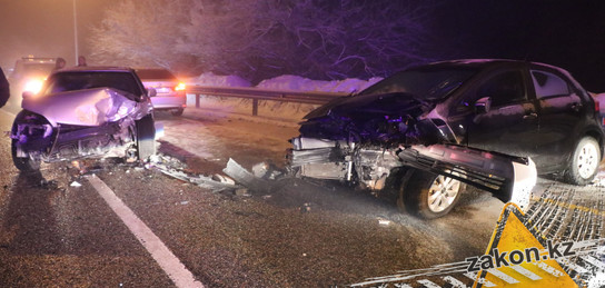 ДТП произошло в ночь на 28 февраля на улице Керей Жанибек рядом со спорткомплексом Медео, сообщает корреспондент zakon.kz.