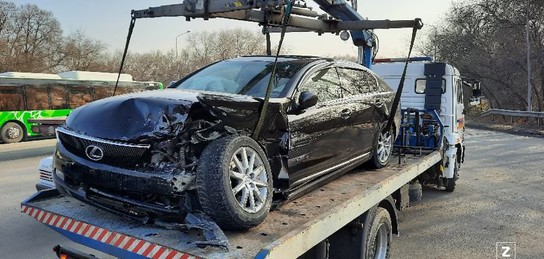 Lexus не смог остановиться и выехал на встречное движение и столкнулся с Toyota Windom.