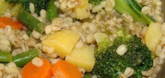 Крупу замачиваем с вечера, чтобы набухла. Обжариваем в масле мелко нарезанный лук 1–2 минуты. Затем добавляем мелко нарезанный чеснок и порошок карри, перемешиваем. Через 1 минуту добавляем перловую крупу (без жидкости для замачивания), кружочками морковь и кубиками картошку. Наливаем воду, закрываем крышкой и варим при медленном кипении 20 минут. Через 20 минут добавляем брокколи и стручковую фасоль (можно не размораживать), солим по вкусу. И варим еще минут 8–10.