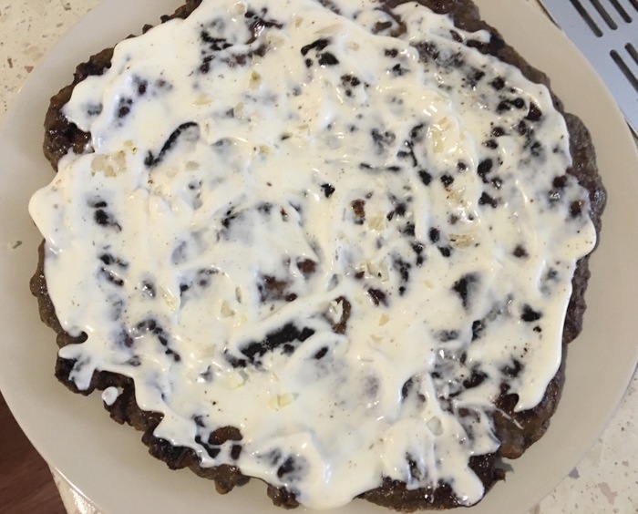 Готовые коржи складываем на тарелку и смазываем майонезом, посыпая слегка мелко рубленным чесноком. И так делаем до тех пор, пока «тесто» не закончится.