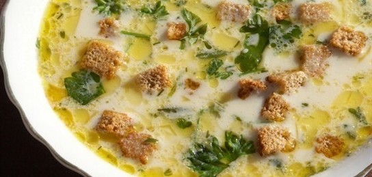 Сырный суп с шампиньонами и сухариками