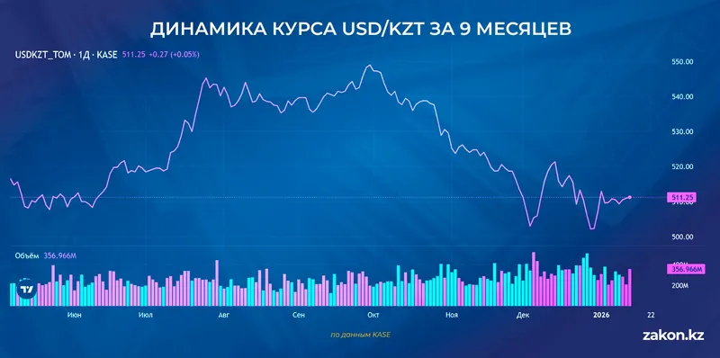 Несмотря на недельную динамику, на межбанковском рынке уже наблюдается коррекция: доллар торгуется по 509,635 тенге, что на 0,2% ниже официального значения. В более широком горизонте тенге демонстрирует уверенность: