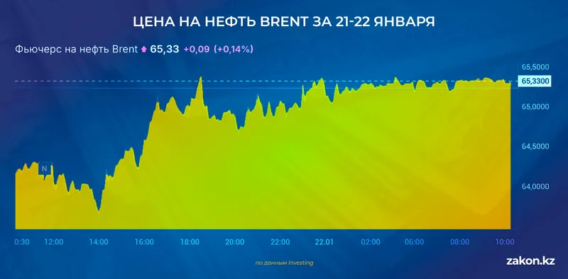 Стоимость нефти марки Brent преодолела психологическую отметку в 65 долларов за баррель. Рост котировок аналитики связывают с остановкой добычи на крупном казахстанском месторождении и усилением геополитической напряженности, сообщает Zakon.kz.