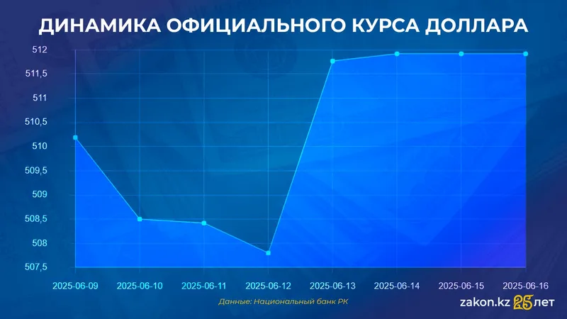 По результатам торгов, в понедельник, 16 июня, средневзвешенный курс доллара составил 512,44 тенге. Между тем на прошлой неделе тенге укреплялся до 507–508 тенге за доллар, но резко ослаб к пятницу, завершив неделю на отметке 512,10 тенге.