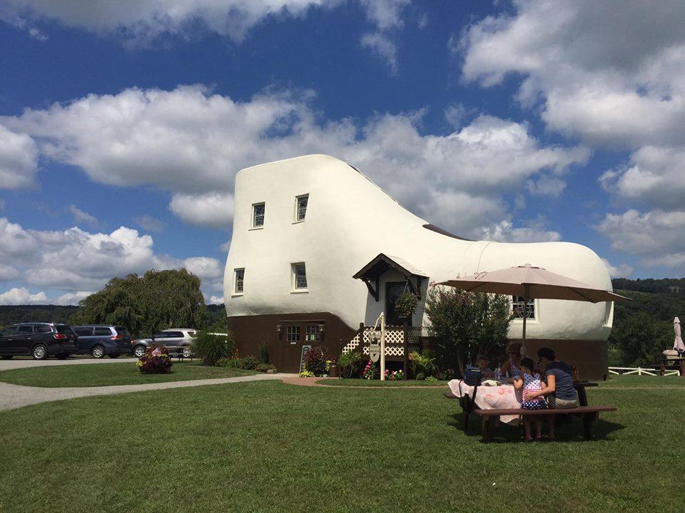 Ему принадлежало множество магазинов обуви, и своим домом он хотел привлечь к ним внимание. Даже собачья конура здесь в виде башмака. Сегодня у дома-башмака новые владельцы, которые открыли в нем кафе.