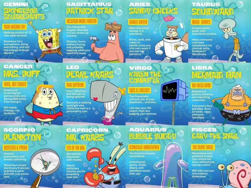 Кто вы по знаку зодиака из персонажей «Губки Боба»