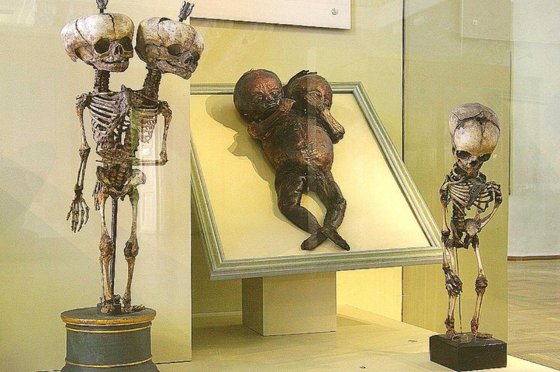 Один из самых первых экспонатов Кунсткамеры. Препарат со скелетом сиамских близнецов происходит из коллекции знаменитого голландского анатома Фредерика Рюйша. Его анатомические препараты, которые он создавал по собственным методам, славились на всю Европу. В юности Петр Великий, побывав в Голландии с Великим посольством, посетил его «кабинет» в числе прочих достопримечательностей Амстердама — и пришел в восторг.