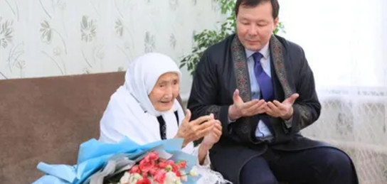 110-летнюю актюбинку навестил аким в Көрісу күні