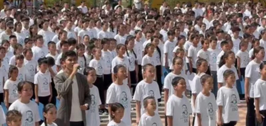 В столичной школе №101 в честь 180-летия Абая Кунанбаева около 5000 детей вместе исполнили стихотворение великого поэта "Желсіз түнде жарық ай" ("Ясная луна в безветренную ночь"), передает корреспондент Zakon.kz.