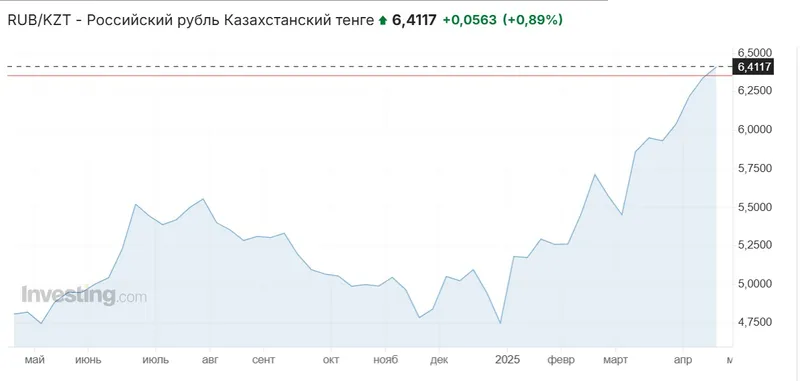 Однако, с начала 2025 года, динамика резко изменилась. Начиная с января, курс рубля демонстрировал устойчивый и ускоряющийся рост. К концу марта курс превысил отметку 6,0 тенге за рубль. Этот восходящий тренд продолжился и в апреле 2025 года, приведя к текущим значениям выше 6,4 тенге за рубль.