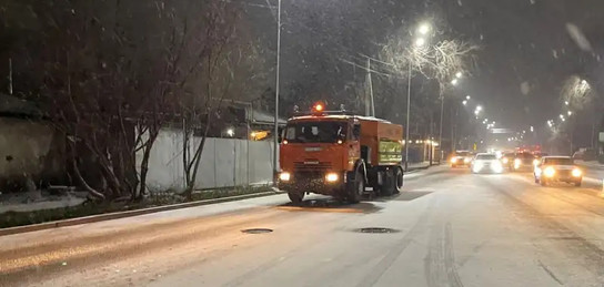 На опасных участках, спусках, подъемах, съездах транспортных развязок для предупреждения гололеда до начала снегопада дорожные работники обработали полотно жидкими реагентами.