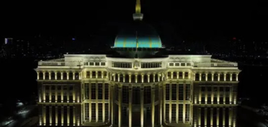 Одной из самых знаковых локаций акции стала резиденция президента: на кадрах видно, как Акорда полностью погрузилась в темноту, отключив наружное освещение в знак солидарности с глобальной инициативой.