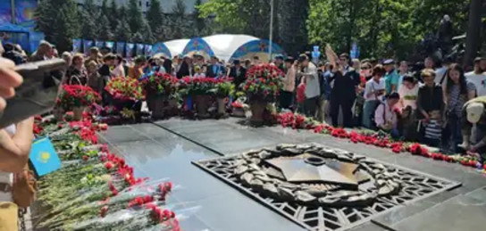 В этом году, чтобы почтить память казахстанцев погибших на фронтах Великой Отечественной Войны пришли сотни людей.