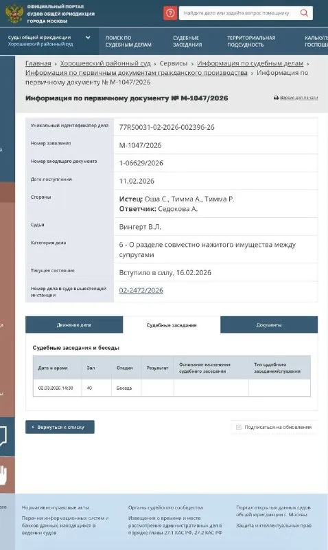 Со слов Маргариты Гавриловой в ее Telegram-канале, судебное заседание по делу против Анны Седоковой состоится 2 марта в Хорошевском районном суде.