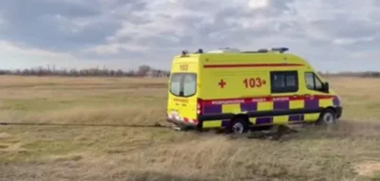 Автомобиль скорой помощи завяз в грязи в Карагандинской области
