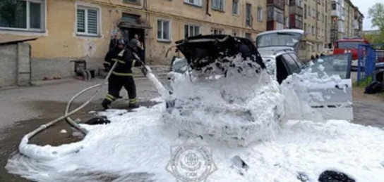 Автомобиль вспыхнул во дворе жилой многоэтажки в Петропавловске