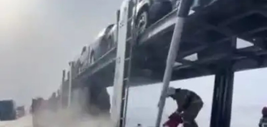 В Жамбылской области сотрудники МЧС спасли от уничтожения автовоз груженный автомобилями, сообщает Zakon.kz.