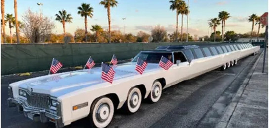 Лимузин "Американская мечта", вмещающий более 75 человек, включает в себя удобства, достойные короля: большую водяную кровать, бассейн с трамплином для прыжков в воду, джакузи, ванну, поле для мини-гольфа, вертолетную площадку. Он также оснащен несколькими телевизорами, холодильником и телефоном.