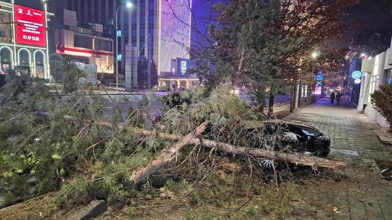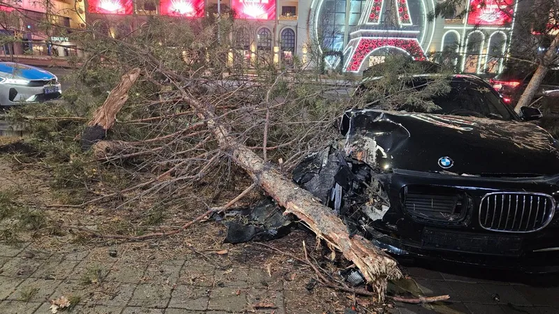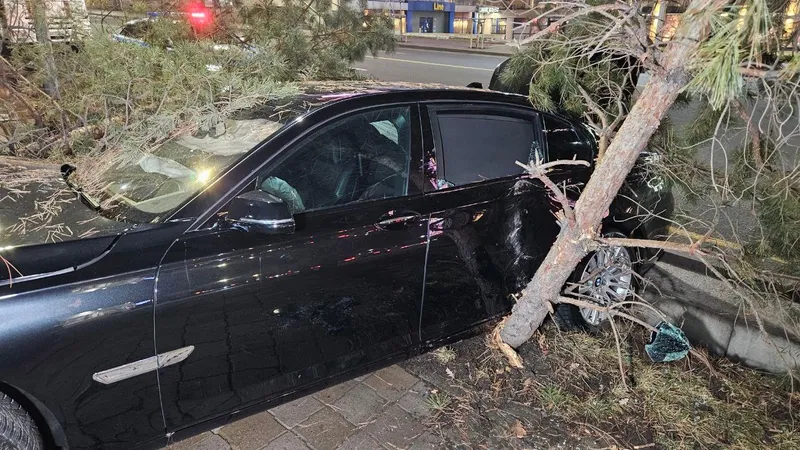 BMW вылетел с дороги и снес две сосны на проспекте Назарбаева в Алматы