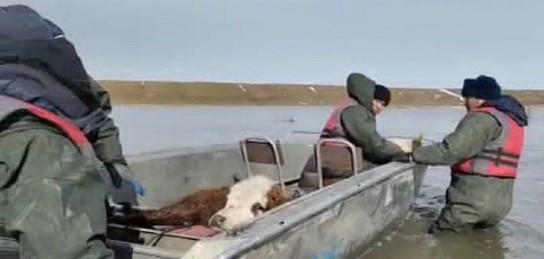 Часть животных спасателям пришлось перевозить на лодке. Остальных перегнали своим ходом, рассказали в пресс-службе департамента по ЧС. Всего спасатели вызволили из водного плена 110 коров и быков и 12 лошадей.